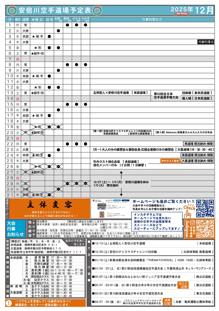 2025.12.012025年12月の活動予定をアップしました!2025年12月の活動予定をアップしましたので下記URLにてご覧ください。 ◆2025年12月の活動... -